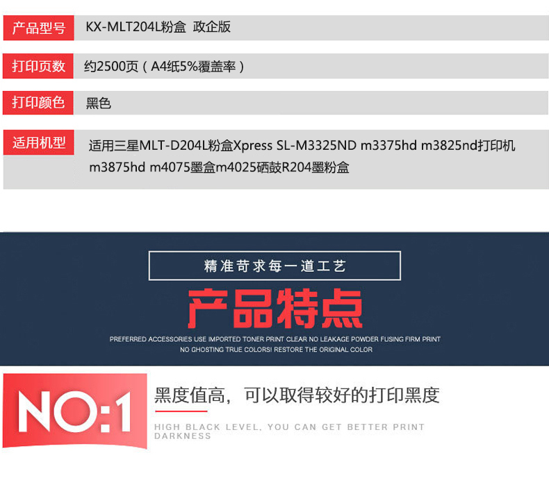凱欣政企版 KX-MLT204L 適用三星MLT-D204L粉盒Xpress SL-M3325ND m3375hd m3825nd打印機(jī) 全國統(tǒng)一價(jià):186元