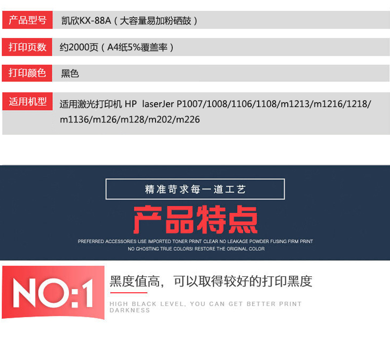 凱欣政企版 KX-CC388A 硒鼓 適用惠普m1136 CC388A HP1108 p1106 1007 p1008 388a m1213nf 1216nfh墨盒 全國統(tǒng)一價(jià):126元