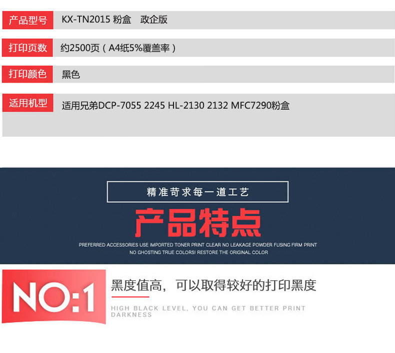 凱欣KX-TN2015 KX-2015粉盒適用兄弟DCP-7055 2245 HL-2130 2132 MFC7290 全國統(tǒng)一價(jià):169元