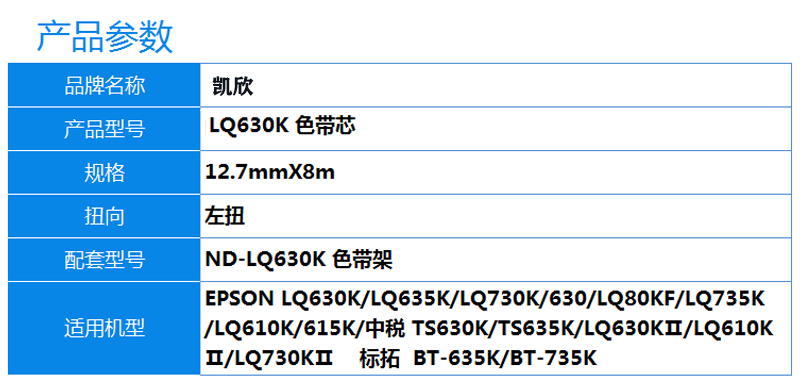 凱欣 KX-LQ630K 適用愛普生EPSON LQ630K 635K 730K 735K 80KF 610K 615K 80KFII色帶芯 全國統(tǒng)一價:60元/6個