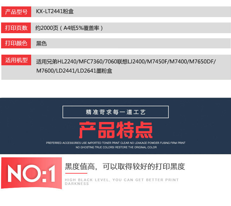 凱欣標(biāo)準(zhǔn)版 KX-LT2441粉盒 適用兄弟HL2240/MFC7360/7060聯(lián)想LJ2400/M7450F/ M7400/M7650DF/M7600全國(guó)統(tǒng)一價(jià):136元