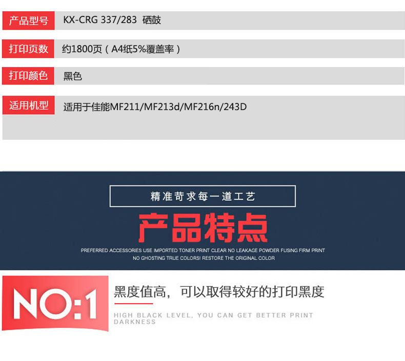 凱欣標準版 KX-CRG337/283粉盒 適用于佳能MF211/MF213d/MF216n/243D 全國統(tǒng)一價:130元
